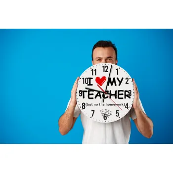 i love my teacher but no the homework, Ρολόι τοίχου ξύλινο (30cm)