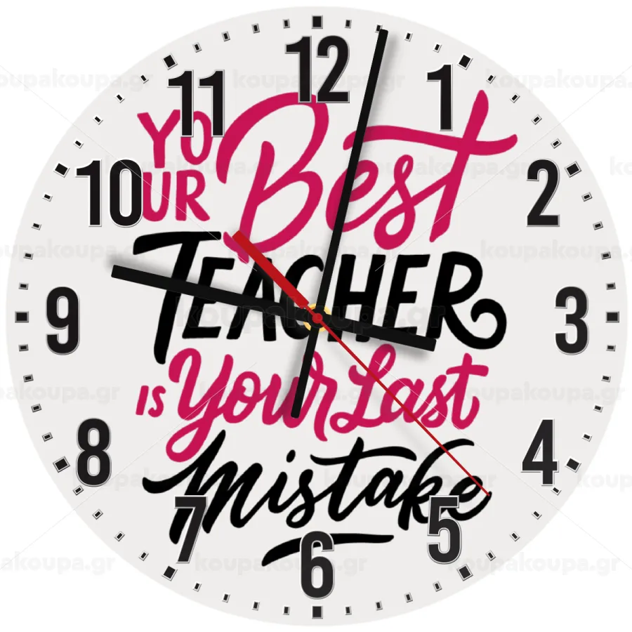 Typography quotes your best teacher is your last mistake, Ρολόι τοίχου ξύλινο (30cm)