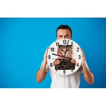 Cool cat, Ρολόι τοίχου ξύλινο (30cm)