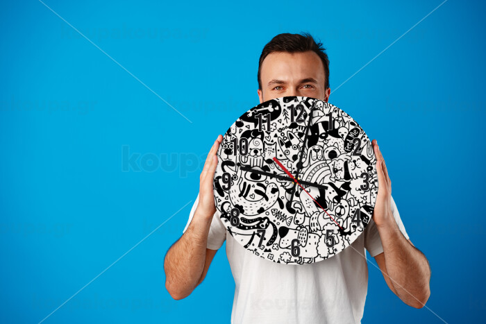 DOG pattern, Ρολόι τοίχου ξύλινο (30cm)