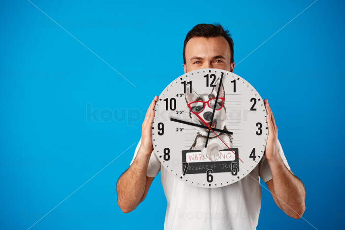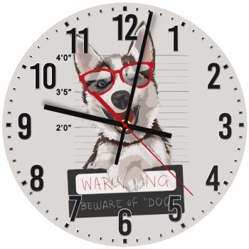 Warning, beware of Dog, Ρολόι τοίχου ξύλινο (30cm)