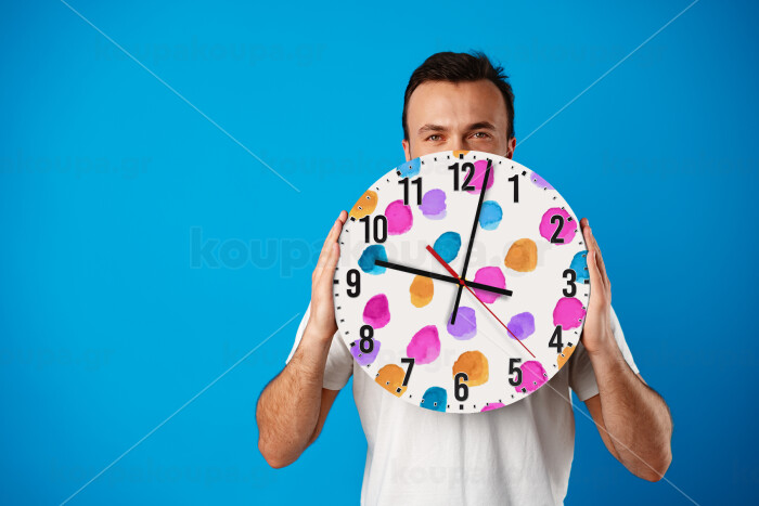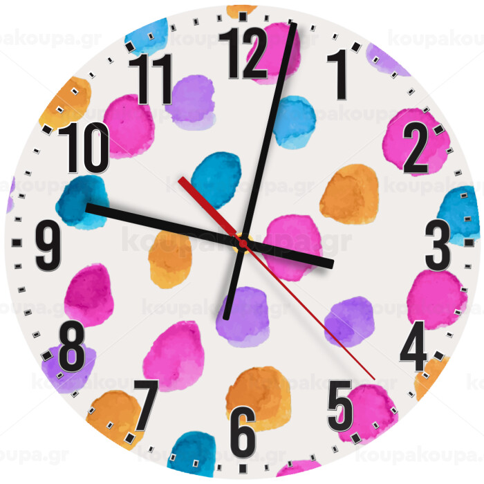 Watercolor dots, Ρολόι τοίχου ξύλινο (30cm)