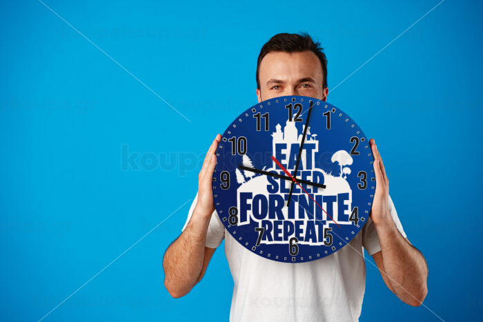 Eat Sleep Fortnite Repeat, Ρολόι τοίχου ξύλινο (30cm)