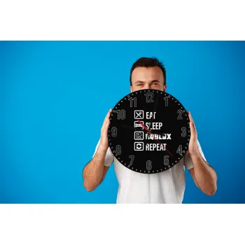 Eat, Sleep, Roblox, Repeat, Ρολόι τοίχου ξύλινο (30cm)