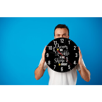 Dream big, Sparkle more, Shine bright, Ρολόι τοίχου ξύλινο (30cm)