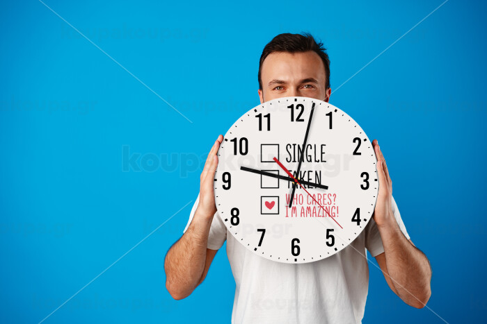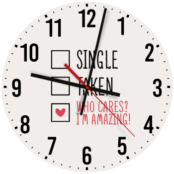 Single, Taken, Who cares i'm amazing, Ρολόι τοίχου ξύλινο (30cm)