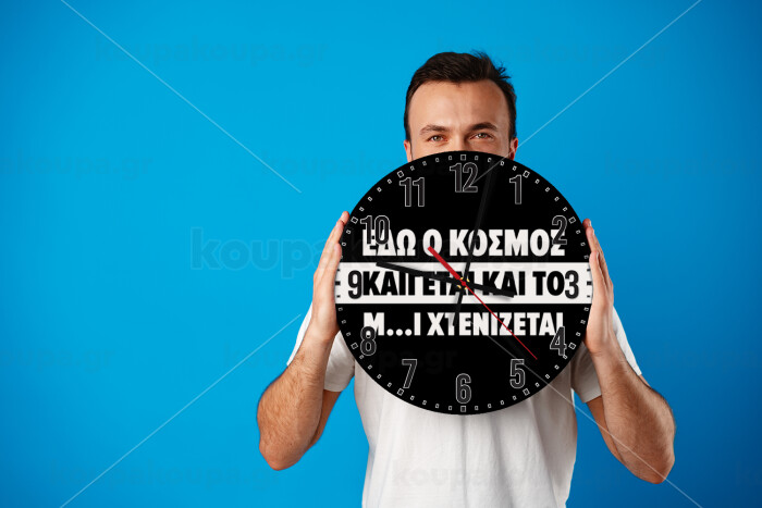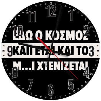 Εδώ ο κόσμος καίγεται και το Μ....Ι χτενίζεται, Ρολόι τοίχου ξύλινο (30cm)