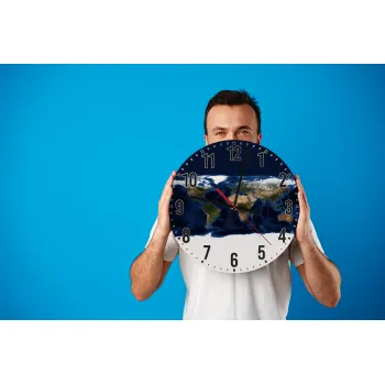Earth map, Ρολόι τοίχου ξύλινο (30cm)