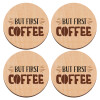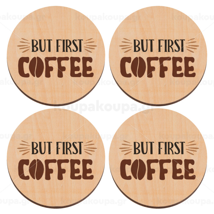 But first Coffee, ΣΕΤ x4 Σουβέρ ξύλινα στρογγυλά plywood (9cm)