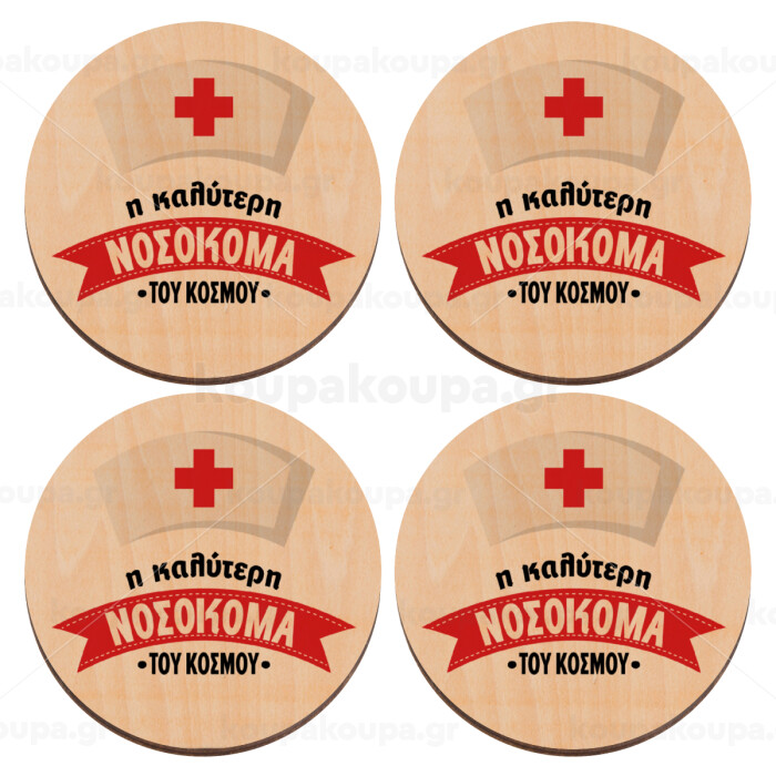Η καλύτερη νοσοκόμα του κόσμου!!!, ΣΕΤ x4 Σουβέρ ξύλινα στρογγυλά plywood (9cm)