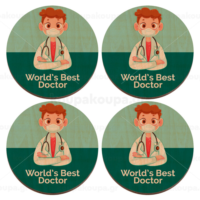 World's Best Doctor, ΣΕΤ x4 Σουβέρ ξύλινα στρογγυλά plywood (9cm)