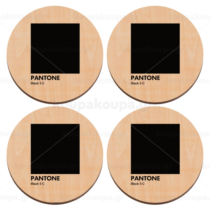 Pantone Black, ΣΕΤ x4 Σουβέρ ξύλινα στρογγυλά plywood (9cm)