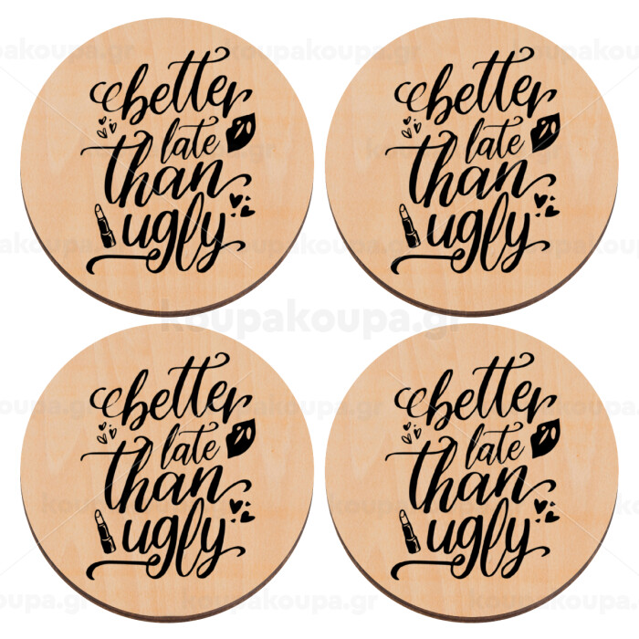 Better late than ugly, ΣΕΤ x4 Σουβέρ ξύλινα στρογγυλά plywood (9cm)