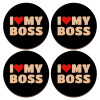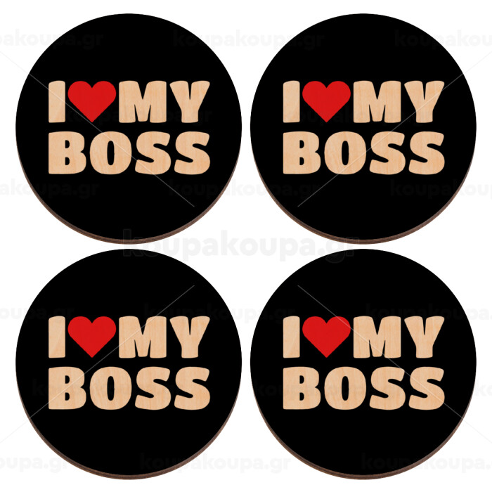I LOVE MY BOSS, ΣΕΤ x4 Σουβέρ ξύλινα στρογγυλά plywood (9cm)