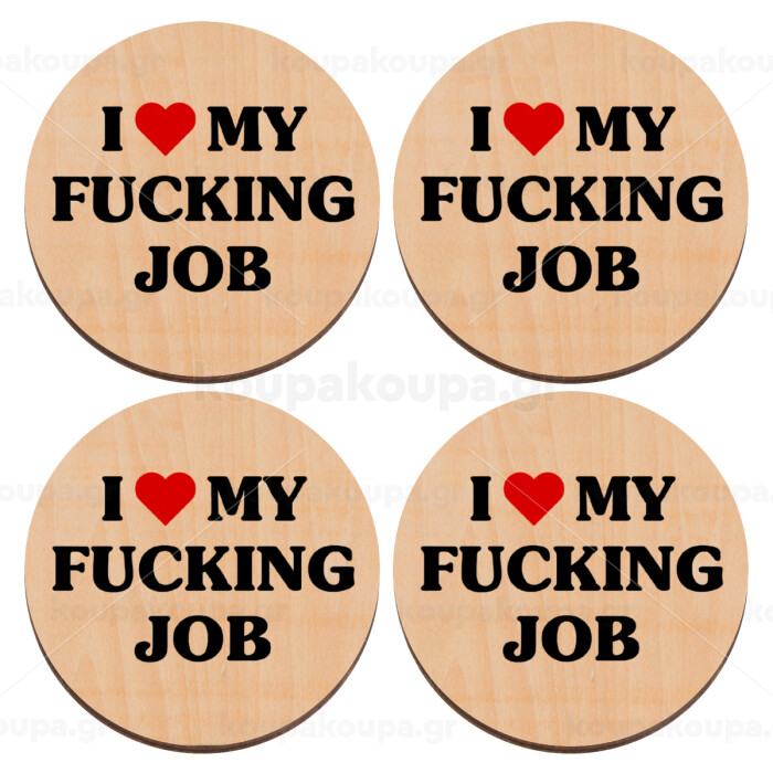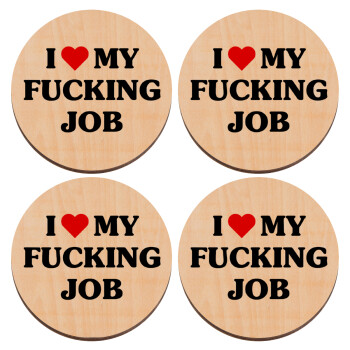 I love my fucking job, ΣΕΤ x4 Σουβέρ ξύλινα στρογγυλά plywood (9cm)