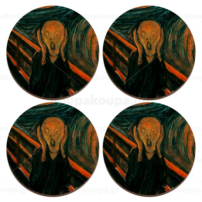 The Scream, ΣΕΤ x4 Σουβέρ ξύλινα στρογγυλά plywood (9cm)