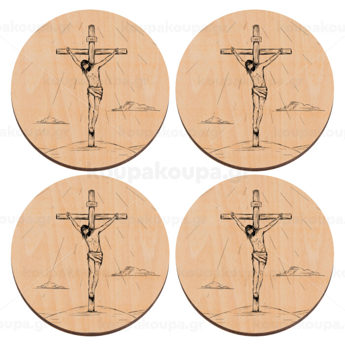 Jesus Christ , ΣΕΤ x4 Σουβέρ ξύλινα στρογγυλά plywood (9cm)