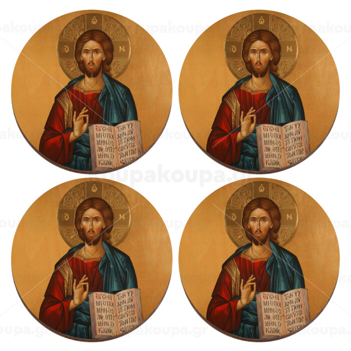 Jesus, ΣΕΤ x4 Σουβέρ ξύλινα στρογγυλά plywood (9cm)