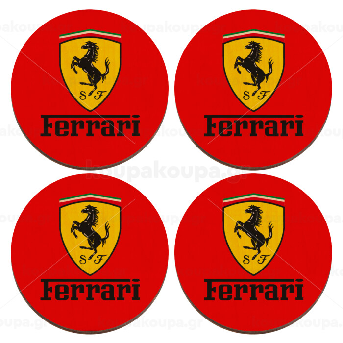 Ferrari S.p.A., ΣΕΤ x4 Σουβέρ ξύλινα στρογγυλά plywood (9cm)
