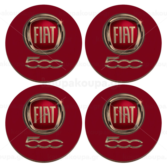FIAT 500, ΣΕΤ x4 Σουβέρ ξύλινα στρογγυλά plywood (9cm)