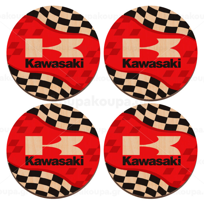 Kawasaki, ΣΕΤ x4 Σουβέρ ξύλινα στρογγυλά plywood (9cm)