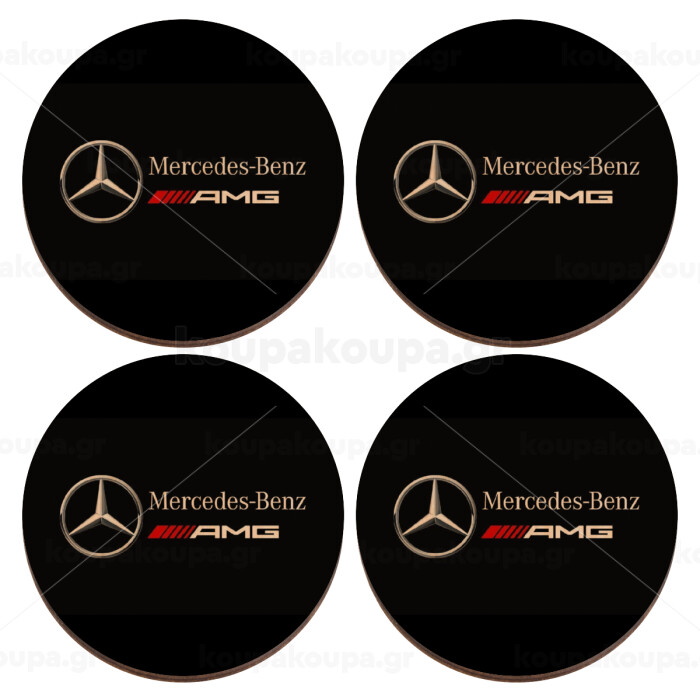 Mercedes AMG, ΣΕΤ x4 Σουβέρ ξύλινα στρογγυλά plywood (9cm)