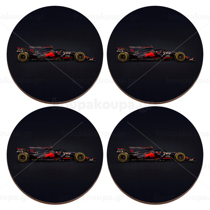 Redbull Formula 1, ΣΕΤ x4 Σουβέρ ξύλινα στρογγυλά plywood (9cm)