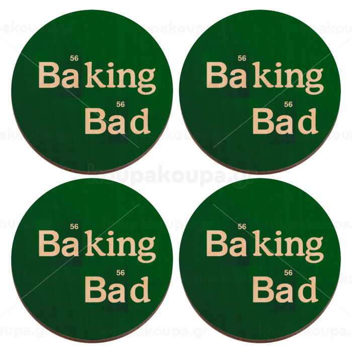Baking Bad, ΣΕΤ x4 Σουβέρ ξύλινα στρογγυλά plywood (9cm)