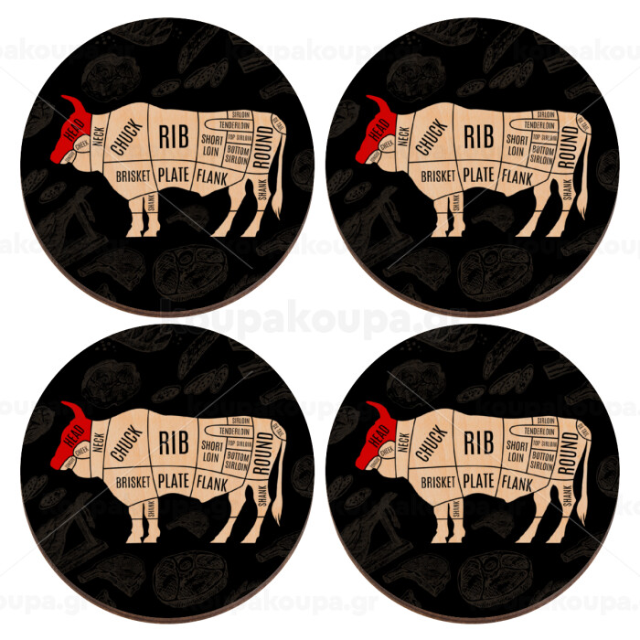 Diagrams for butcher shop, ΣΕΤ x4 Σουβέρ ξύλινα στρογγυλά plywood (9cm)