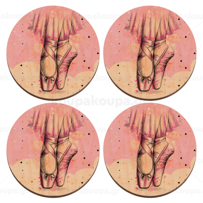 Ballerina shoes, ΣΕΤ x4 Σουβέρ ξύλινα στρογγυλά plywood (9cm)