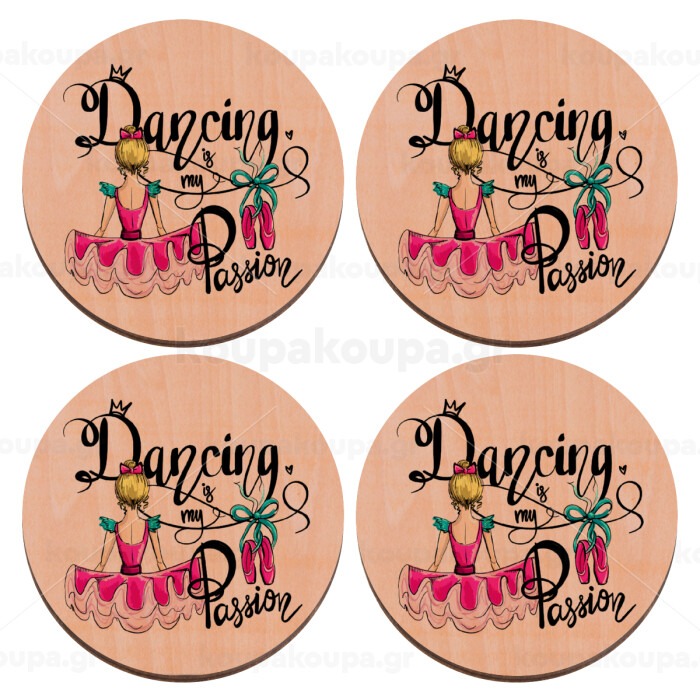 Dancing is my Passion, ΣΕΤ x4 Σουβέρ ξύλινα στρογγυλά plywood (9cm)
