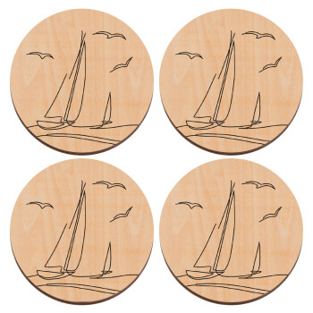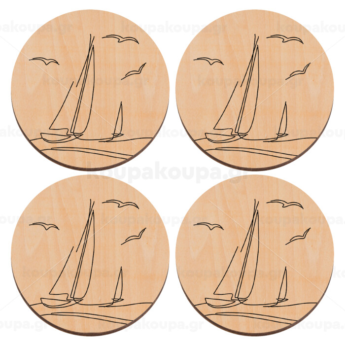 Sailing, ΣΕΤ x4 Σουβέρ ξύλινα στρογγυλά plywood (9cm)