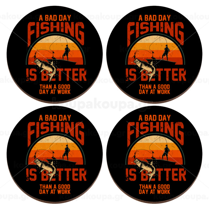 A bad day FISHING is better than a good day at work, ΣΕΤ x4 Σουβέρ ξύλινα στρογγυλά plywood (9cm)
