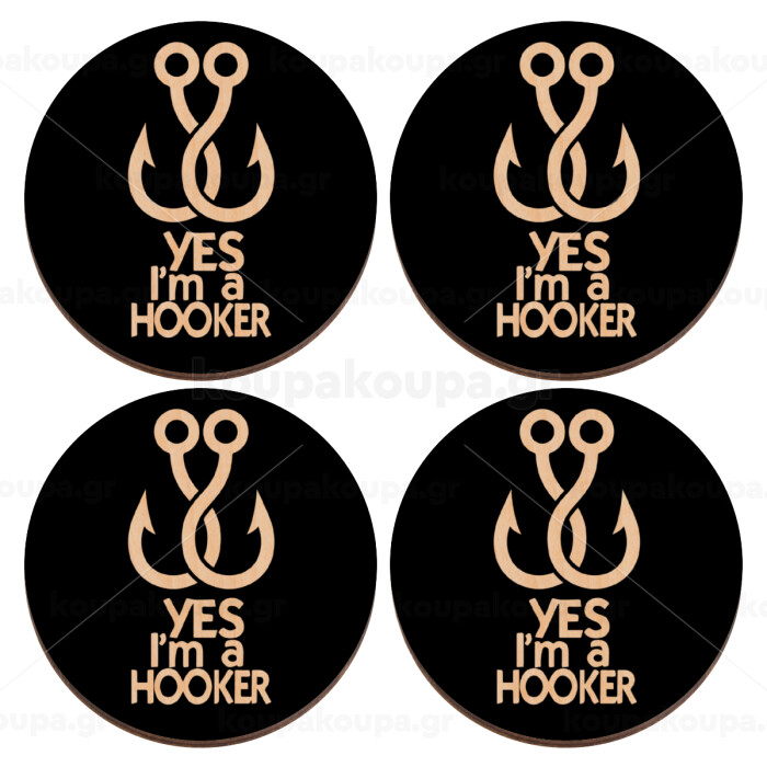 Yes i am Hooker, ΣΕΤ x4 Σουβέρ ξύλινα στρογγυλά plywood (9cm)