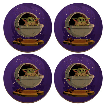 Baby Yoda mandalorian, ΣΕΤ x4 Σουβέρ ξύλινα στρογγυλά plywood (9cm)
