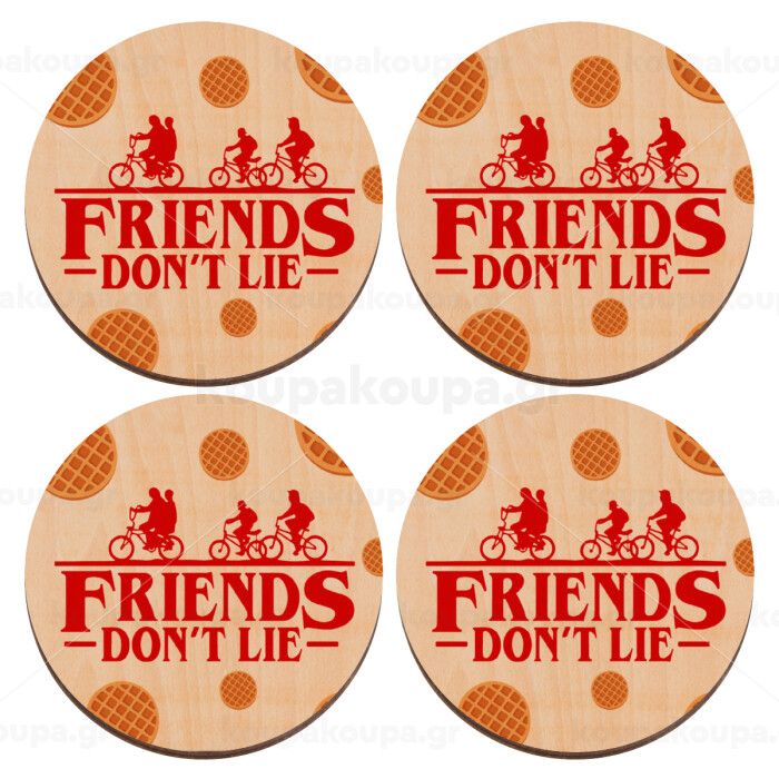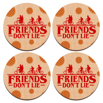 Friends Don't Lie, Stranger Things, ΣΕΤ x4 Σουβέρ ξύλινα στρογγυλά plywood (9cm)