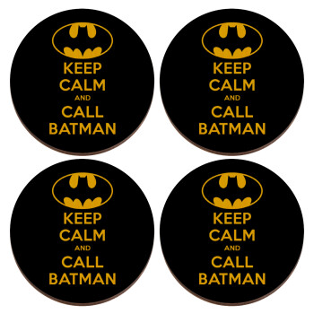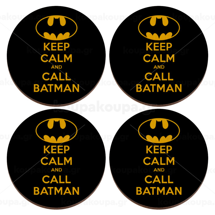 KEEP CALM & Call BATMAN, ΣΕΤ x4 Σουβέρ ξύλινα στρογγυλά plywood (9cm)