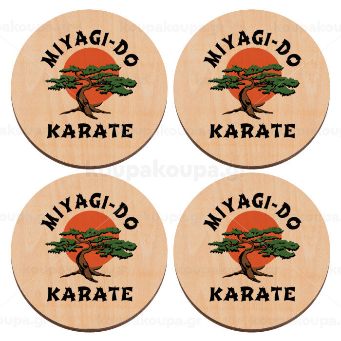 Miyagi-do karate, ΣΕΤ x4 Σουβέρ ξύλινα στρογγυλά plywood (9cm)