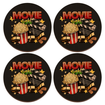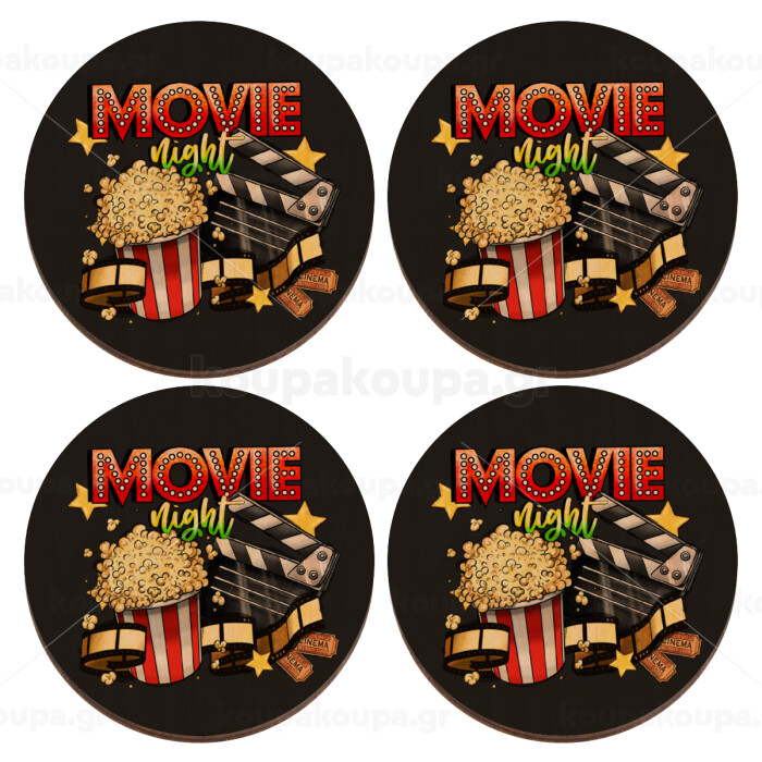 Movie night, ΣΕΤ x4 Σουβέρ ξύλινα στρογγυλά plywood (9cm)