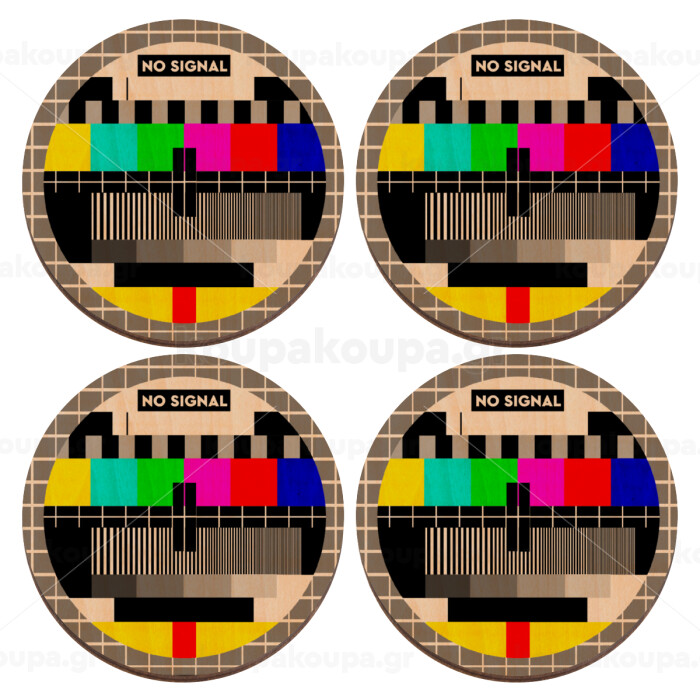No signal, ΣΕΤ x4 Σουβέρ ξύλινα στρογγυλά plywood (9cm)