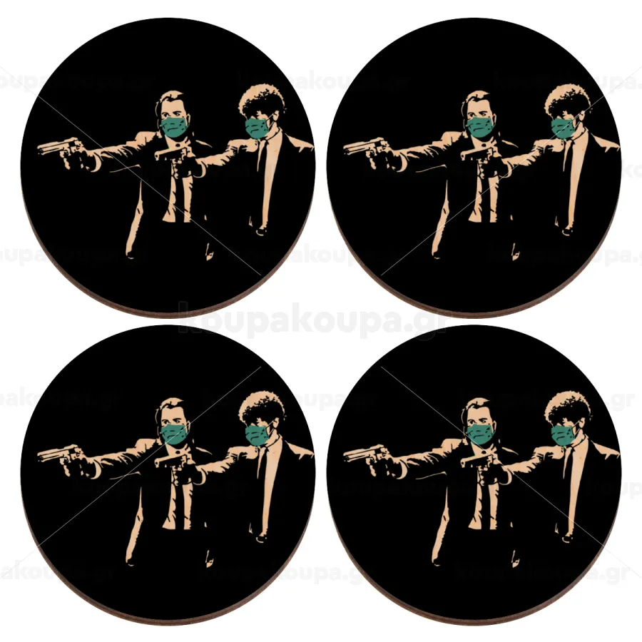 Pulp Fiction guns, ΣΕΤ x4 Σουβέρ ξύλινα στρογγυλά plywood (9cm)