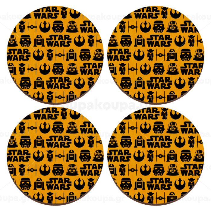 Star Wars Pattern, ΣΕΤ x4 Σουβέρ ξύλινα στρογγυλά plywood (9cm)