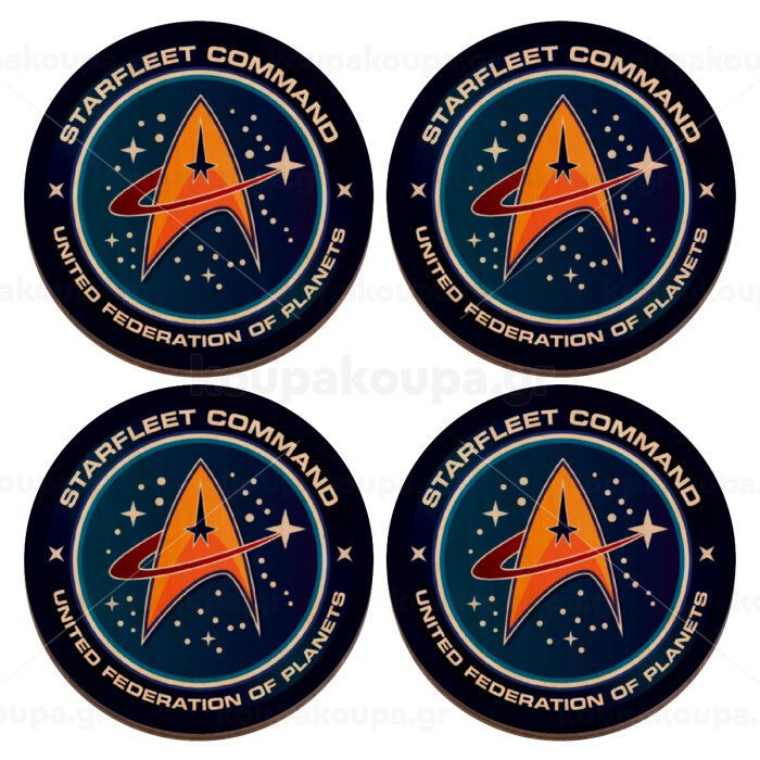 Starfleet command, ΣΕΤ x4 Σουβέρ ξύλινα στρογγυλά plywood (9cm)