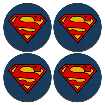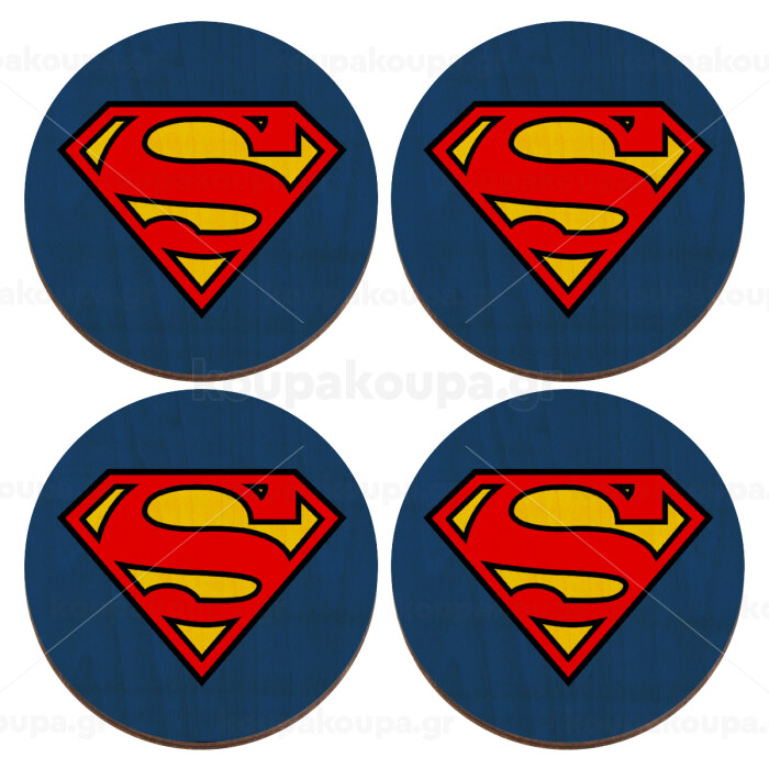 Superman vintage, ΣΕΤ x4 Σουβέρ ξύλινα στρογγυλά plywood (9cm)