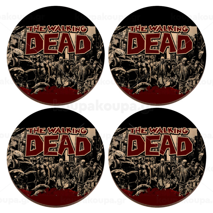 The walking dead comic drawing zombie, ΣΕΤ x4 Σουβέρ ξύλινα στρογγυλά plywood (9cm)
