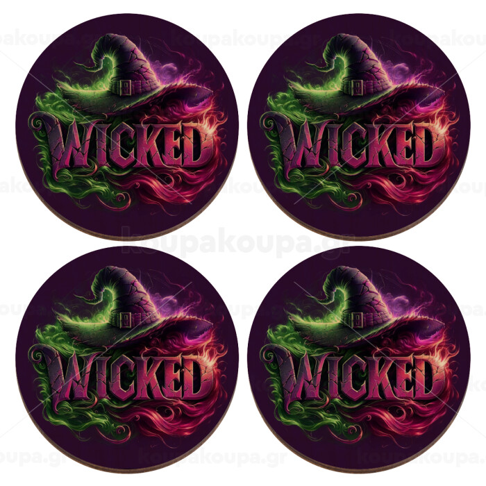 Wicked, ΣΕΤ x4 Σουβέρ ξύλινα στρογγυλά plywood (9cm)