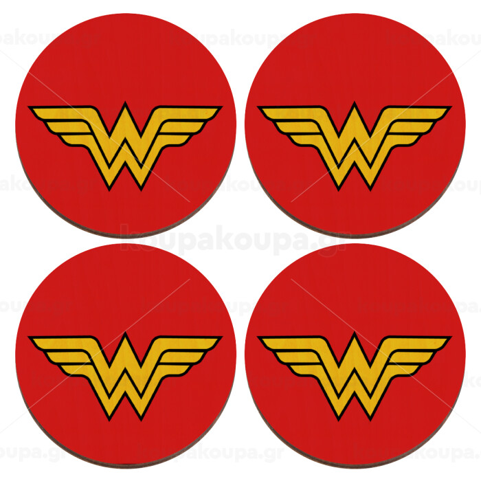 Wonder woman, ΣΕΤ x4 Σουβέρ ξύλινα στρογγυλά plywood (9cm)