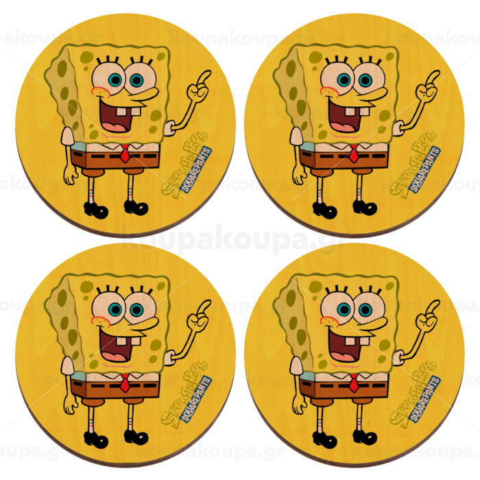 SpongeBob SquarePants character, ΣΕΤ x4 Σουβέρ ξύλινα στρογγυλά plywood (9cm)