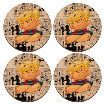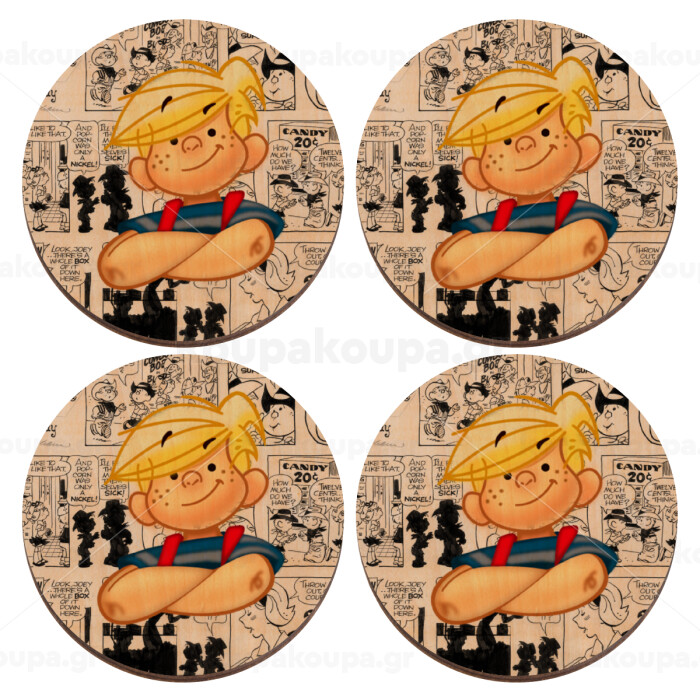 Dennis the Menace, ΣΕΤ x4 Σουβέρ ξύλινα στρογγυλά plywood (9cm)