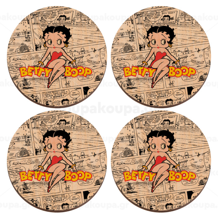 Betty Boop, ΣΕΤ x4 Σουβέρ ξύλινα στρογγυλά plywood (9cm)